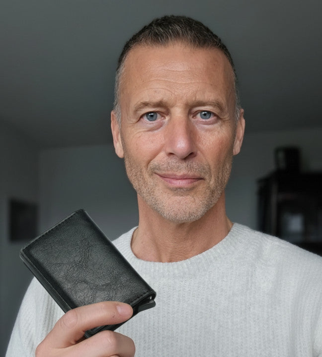 Crafted from premium leather and carbon fibre accents for long-lasting wear and a refined appearance. Durable materials resist scratches and daily scuffs, so the wallet ages well and keeps a premium look whether you're grabbing coffee, heading to the gym, or attending an evening event.